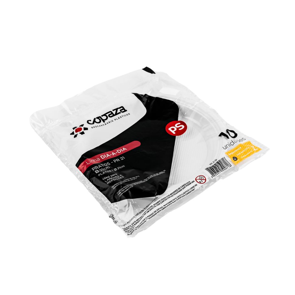 Prato Plástico Descartável PR30 Branco 10 unidades Copaza - Pegorari Embalagens e Festas